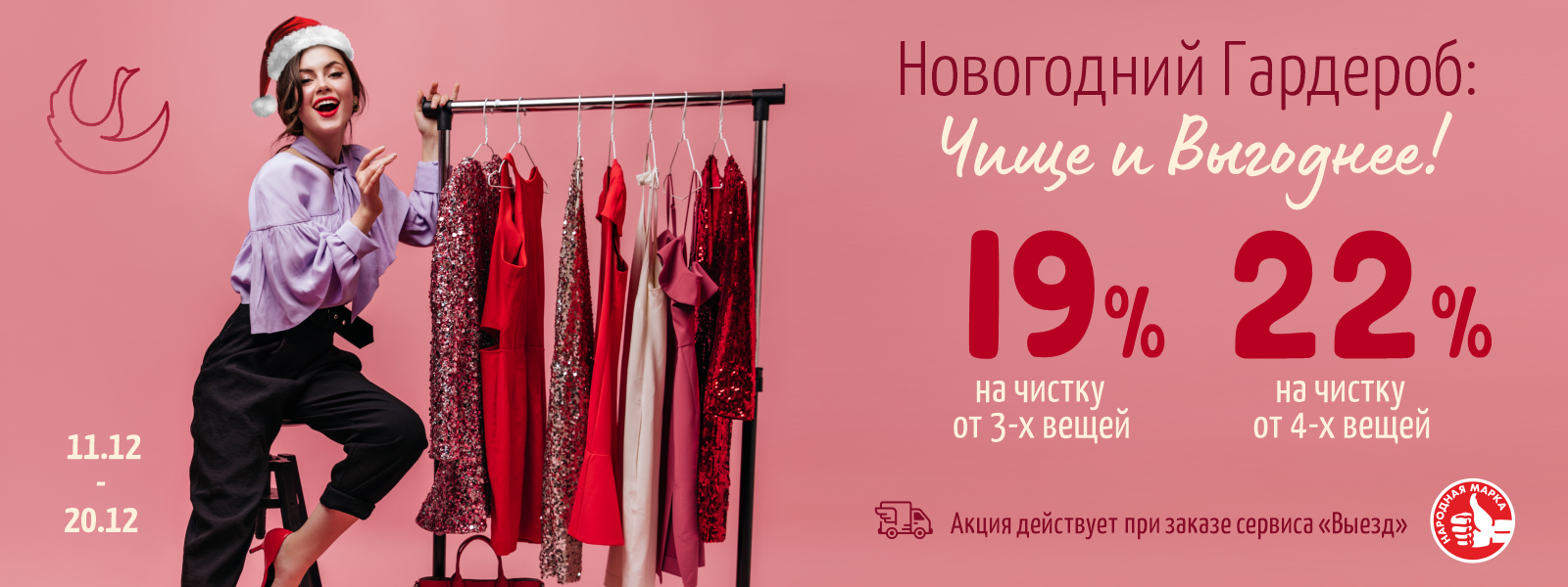 1. Размер скидки составляет 19% и 22% и распространяется на заказ услуги химчистки всего ассортимента от 3-х или 4-х и более изделий, за исключением ассортимента, который вынесен в пункт: «Скидка не распространяется»!