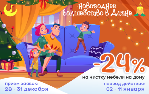 С 28 декабря по 11 января скидка 24% на чистку мебели на дому!
